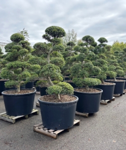 Om een Japanse tuin authentiek te maken is een gevormde tuinboom natuurlijk een vereiste. Lodder Bonsai bv importeert jaarlijks honderden tuinbomen uit Japan. De inkoop doen we rechtstreeks van het veld en ieder voorjaar is er weer een nieuwe collectie. De tuinbomen varieren in grootte van 1,2 meter tot 4 meter en we onderscheiden verschillende modellen zoals meerstammig, cascade, rechtopgaand, gebogen en bollen. De meest gebruikelijke soorten zijn: Ilex crenata, Taxus cuspidata, Pinus parviflora, Rhododendron en Acer palmatum.